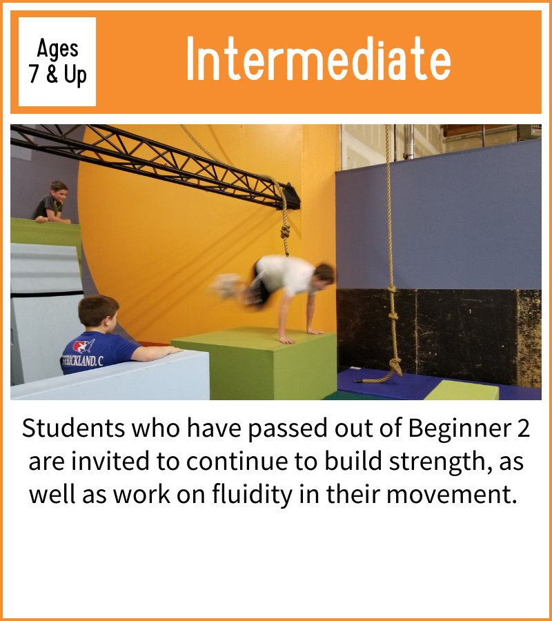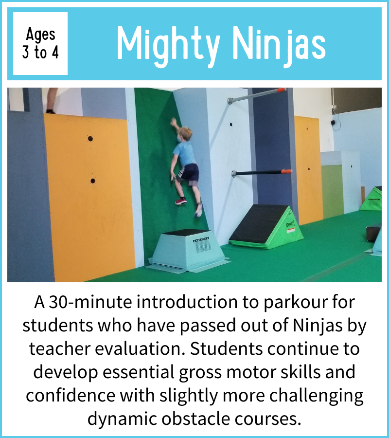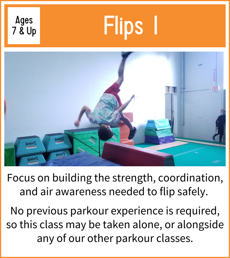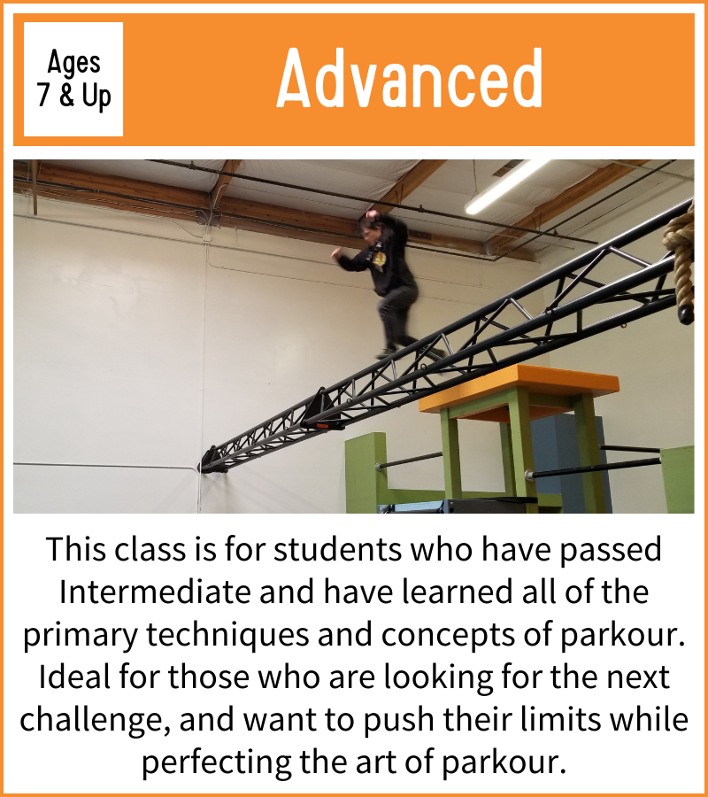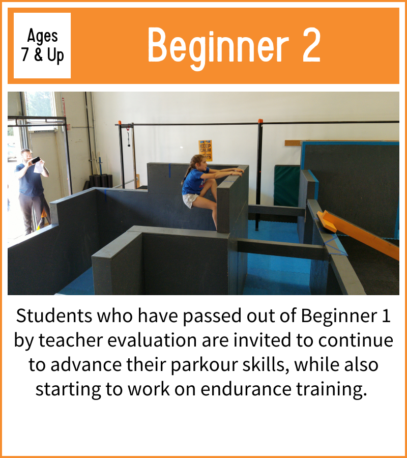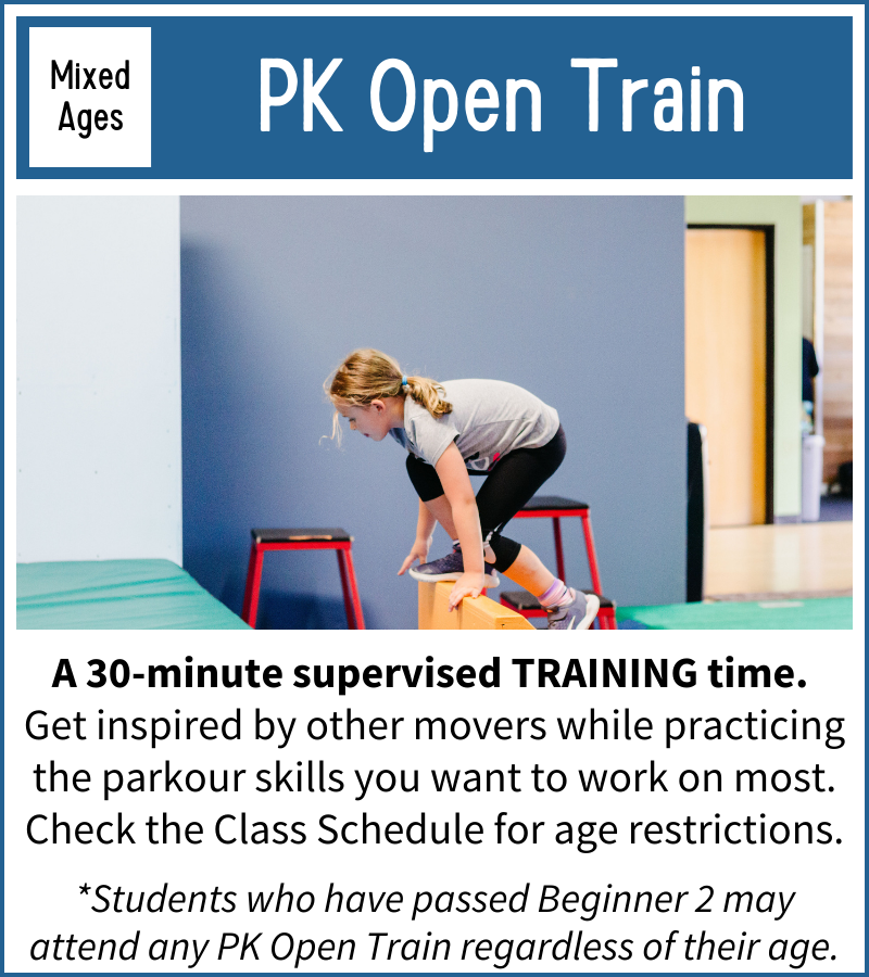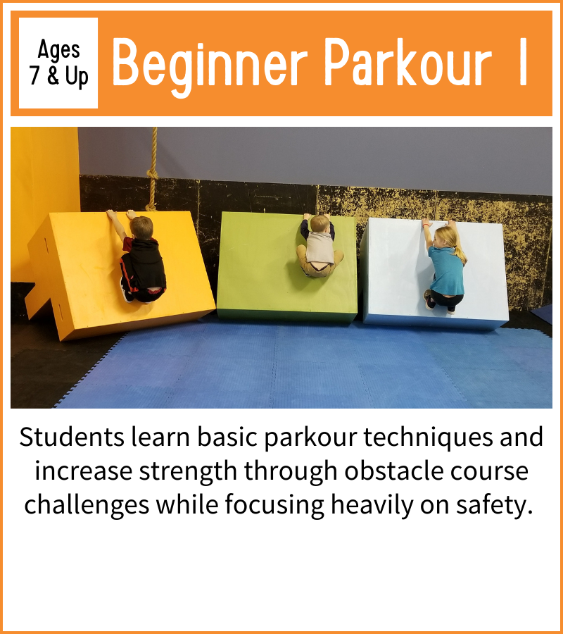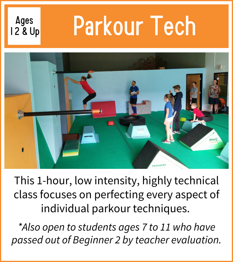 Parkour is a sport that thrives on students learning from one another, so most of our classes are designed to accommodate a wide range of ages. That being said, cognitive development occurs in discrete stages as we grow, so we have separated some ages to encourage this natural progression.