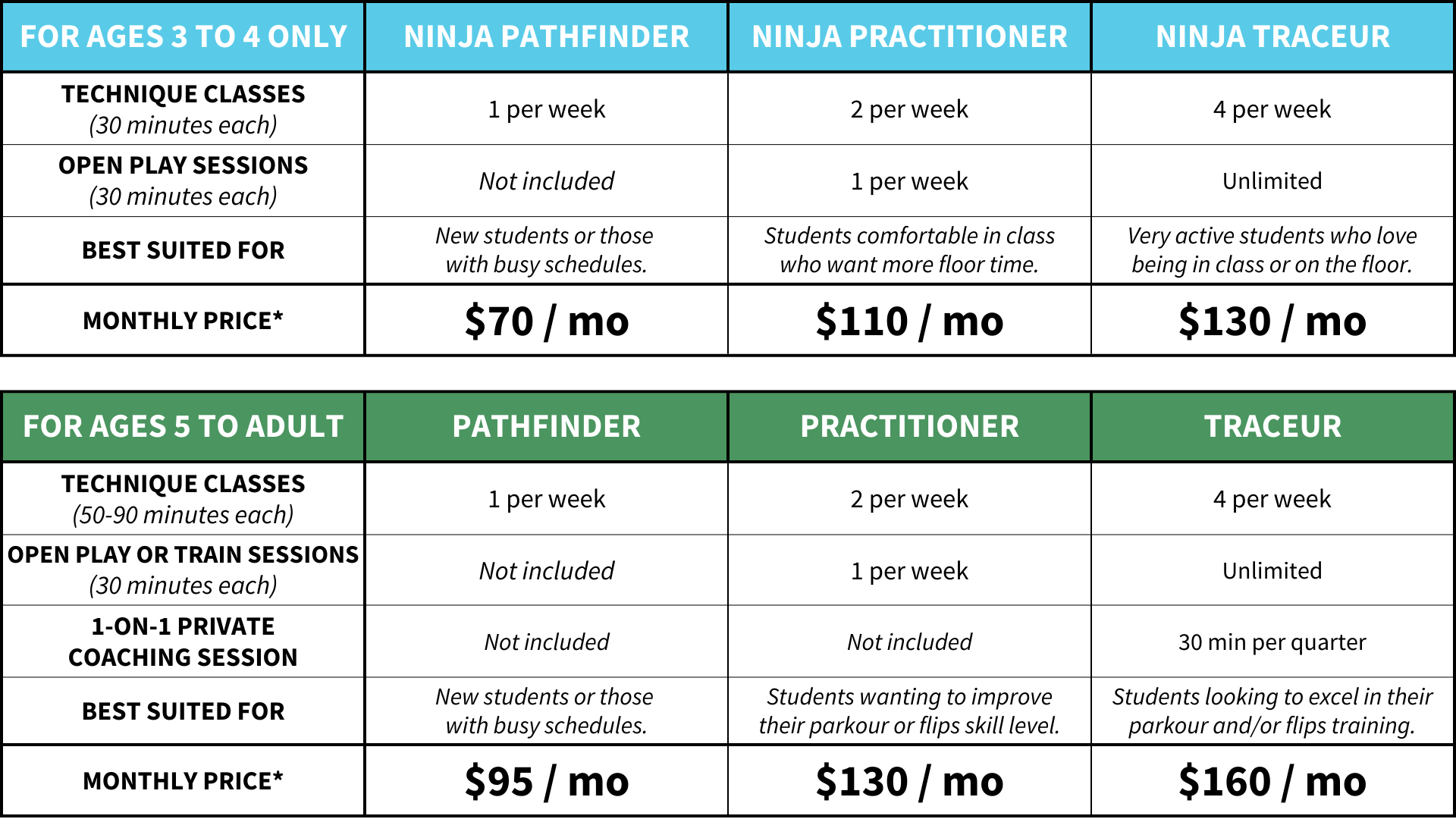 Parkour Class Pricing